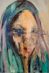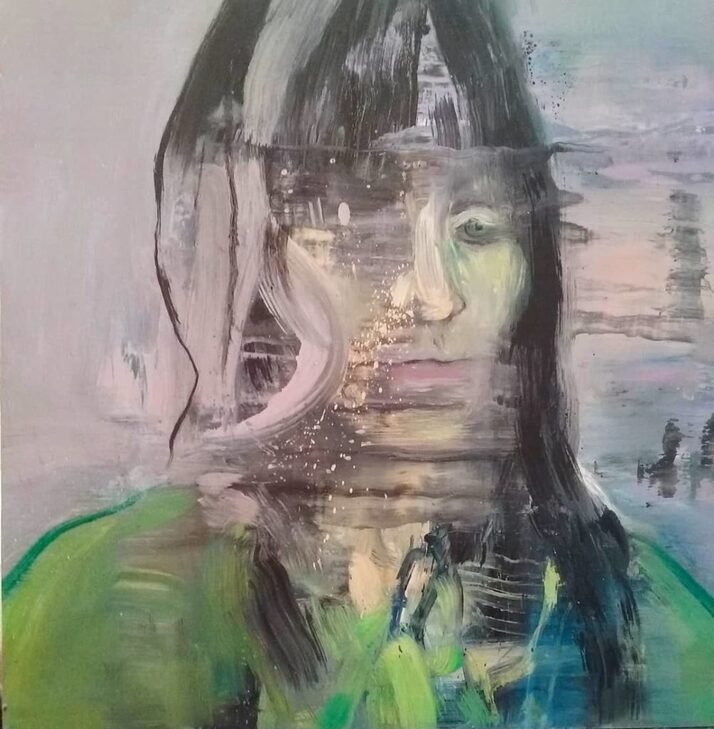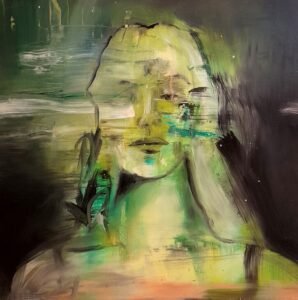 “PORTRAIT EN VERT” / 40 x 40 cm / Oil on fiberboard / Huile sur panneau de fibres / Óleo sobre tablero de fibra